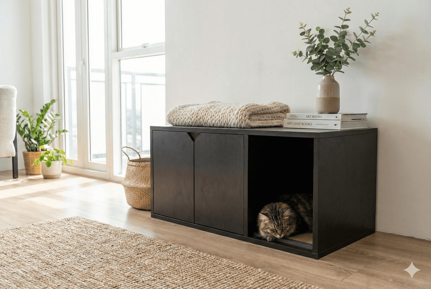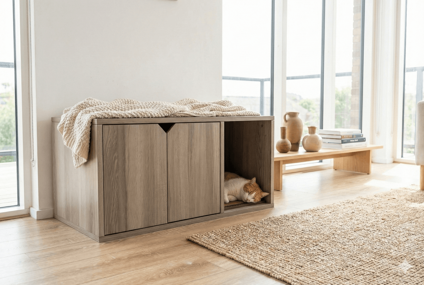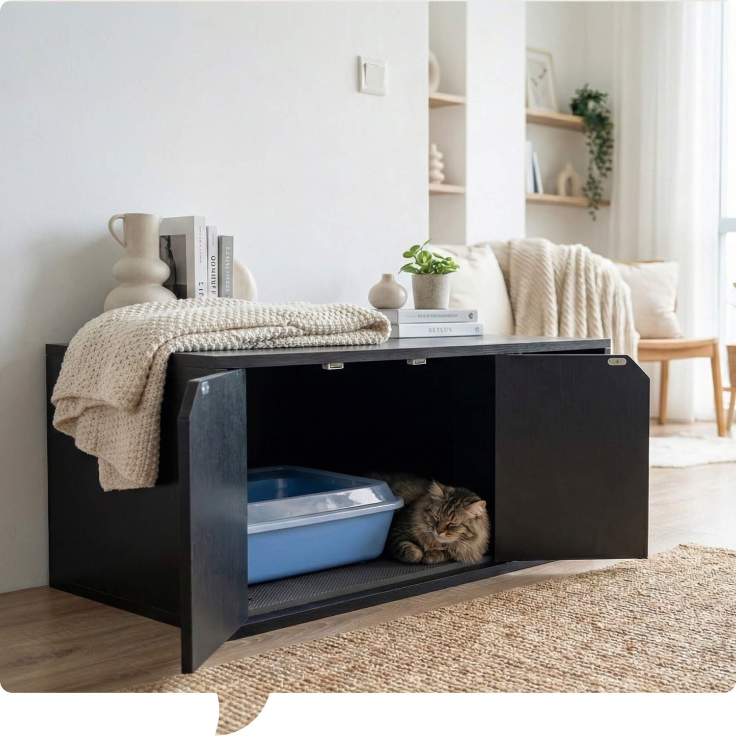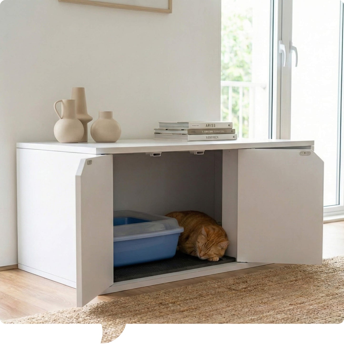 Catchi is een duurzame kattenbak in de vorm van een meubel. Geen witte of grijze plastic bak die je liever verstopt, maar een rustig object dat vanzelf opgaat in je interieur. Gemaakt van G-Board®. Ons gepatenteerde plaatmateriaal van gerecycled karton met beschermende coating. Licht als papier, sterk als hout. Waterafstotend, plasticvrij, gifvrij en volledig recyclebaar. Een eigen plek voor je kat, zonder concessies aan je interieur of je geweten. Klaar om te kiezen?