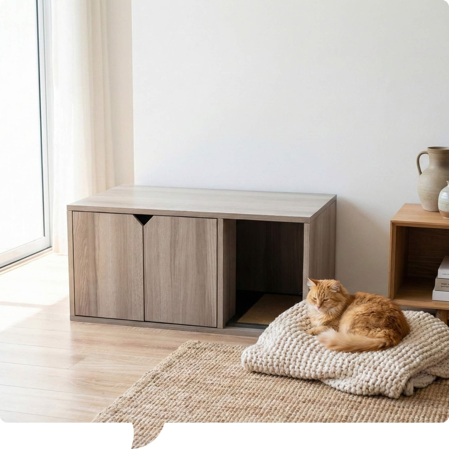 Geen plastic bak om te verstoppen, maar een duurzame oplossing die past bij hoe je woont. Voor je kat een vertrouwde plek. Voor jou een rustiger interieur.